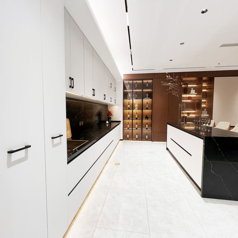 A: ກະດານປະຕູໂດຍບໍ່ມີມືຈັບສໍາລັບຕູ້ເຮືອນຄົວແມ່ນມີຄວາມທັນສະໄຫມແລະງ່າຍຕໍ່ການຮັກສາ. ຫຼືເລືອກທີ່ຈັບສະແຕນເລດແມ່ນເຫມາະສົມຫຼາຍສໍາລັບເຮືອນຄົວ.