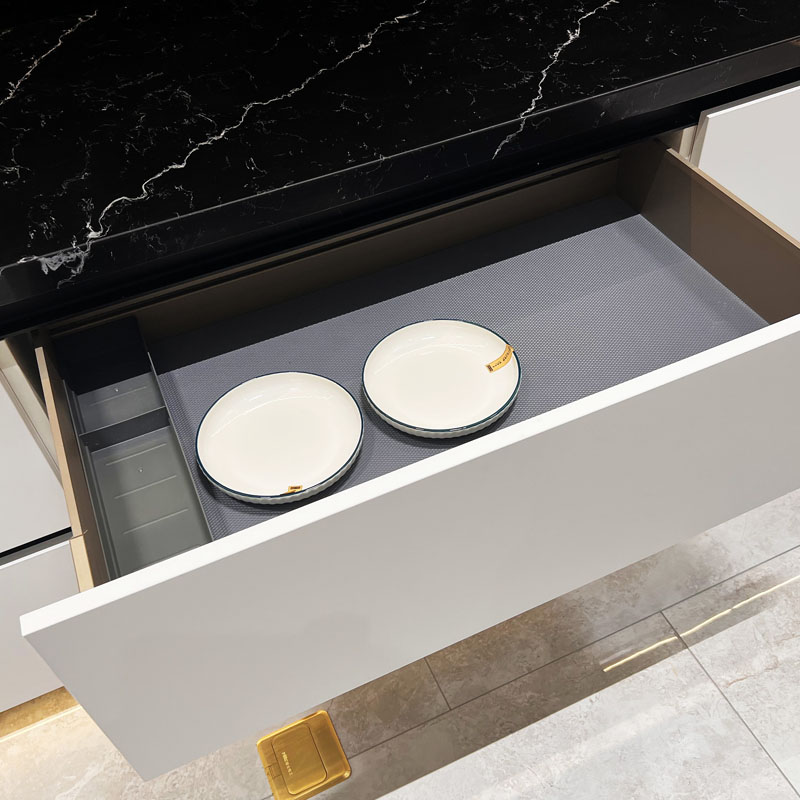 ຊຸດຂອງຕູ້ເຮືອນຄົວສີຂາວທີ່ທັນສະໄຫມນີ້ໃຊ້ການປິ່ນປົວຜິວຫນັງທີ່ມີຄວາມຮູ້ສຶກທີ່ເປັນມິດກັບສິ່ງແວດລ້ອມ. ວັດສະດຸພື້ນຖານຂອງກະດານແມ່ນເຮັດດ້ວຍໄມ້ແປກທີ່ມີຄຸນນະພາບສູງເປັນວັດຖຸດິບກັບເຢຍລະມັນທີ່ນໍາເຂົ້າຊັ້ນນໍາທີ່ອັດສະລິຍະສາຍການຜະລິດອັດຕະໂນມັດ. ພວກເຮົາພຽງແຕ່ໃຊ້ກາວ MDI (4-diphenylmethane diisocyanate); phenyl ມີຄວາມຜັນຜວນໃນລະຫວ່າງຂະບວນການຜະລິດທີ່ມີອຸນຫະພູມສູງ.
