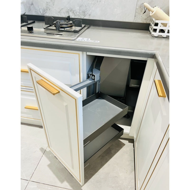 ຕູ້ເຮືອນຄົວສີຂາວແມ່ນຍັງງ່າຍຫຼາຍທີ່ຈະຜະສົມຜະສານກັບຮູບແບບການຕົກແຕ່ງເຮືອນຂອງທ່ານ. ຕູ້ເຮືອນຄົວ PVC ສີຂາວ ຊິໂນອາ ທີ່ມີຮູບສີ່ຫຼ່ຽມມົນຂອງປະຕູຕູ້ເຮືອນຄົວ. ປະຕູຕູ້ເຮືອນຄົວສີຂາວຈັບຄູ່ກັບສີທອງຂອງຕູ້ເຮືອນຄົວທີ່ມີມືຈັບເພື່ອເຮັດໃຫ້ຕູ້ເຮືອນຄົວທີ່ມີຂະຫນາດນ້ອຍເປັນເຮືອນຄົວແບບດັ້ງເດີມທີ່ທັນສະໄຫມແລະຄລາສສິກ.